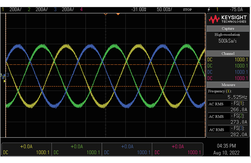 Wartość THD po stronie silnika mniejsza niż 2%.